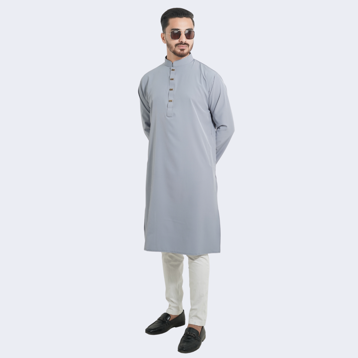 অ্যাশ কালার অরিজিনাল প্রিমিয়াম চায়না ফেব্রিকের সলিড পাঞ্জাবি
