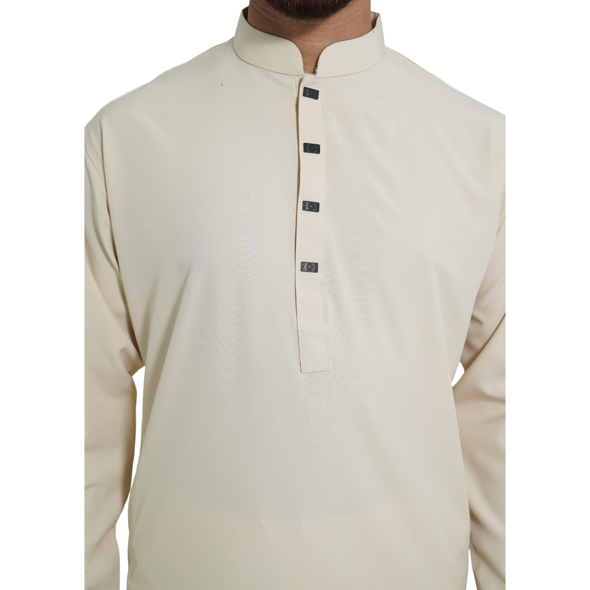 ক্রিম কালার অরিজিনাল প্রিমিয়াম চায়না ফেব্রিকের সলিড পাঞ্জাবি
