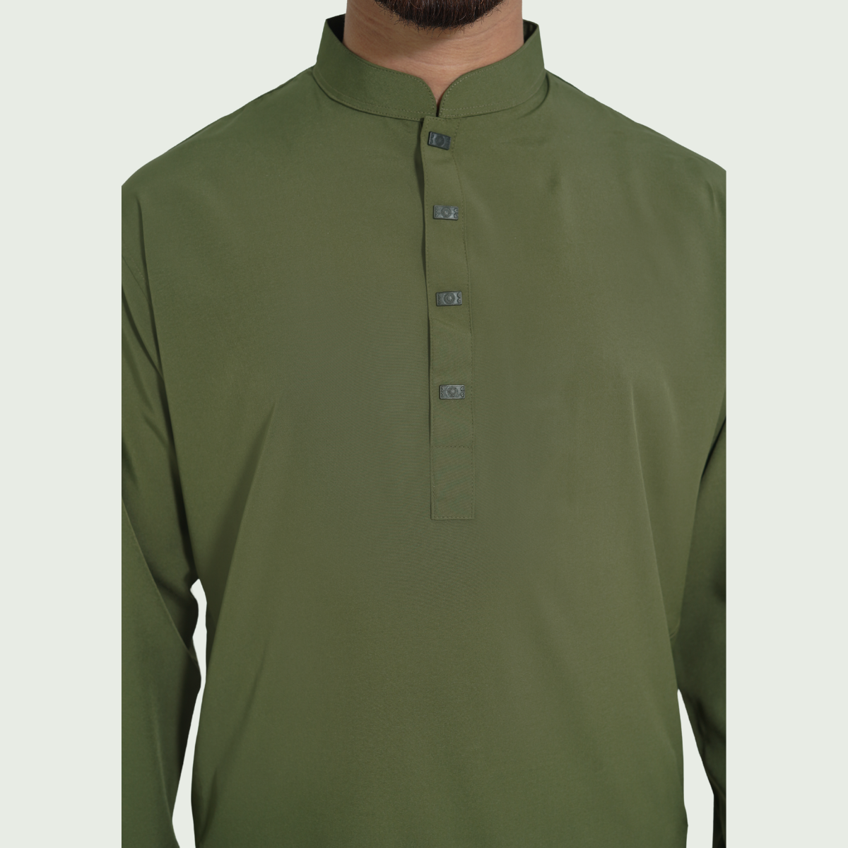 জলপাই কালার অরিজিনাল প্রিমিয়াম চায়না ফেব্রিকের সলিড পাঞ্জাবি
